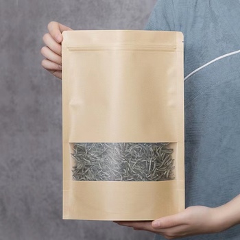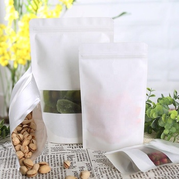 Beyaz Kraft kağıt ayakta çanta gıda paketleme Zip kilit çanta ile pencere